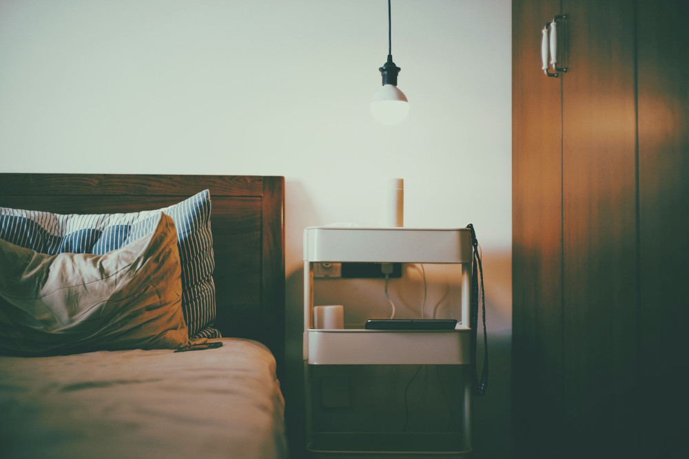 Overvej også duft og belysning. En let duft af lavendel eller bomuld kan skabe ro, mens dæmpet belysning fra lamper med stofskærme giver et varmt og behageligt lys. Kombinér gerne flere lyskilder – loftlampe, sengelamper og eventuelt en lille bordlampe – for at kunne variere stemningen.